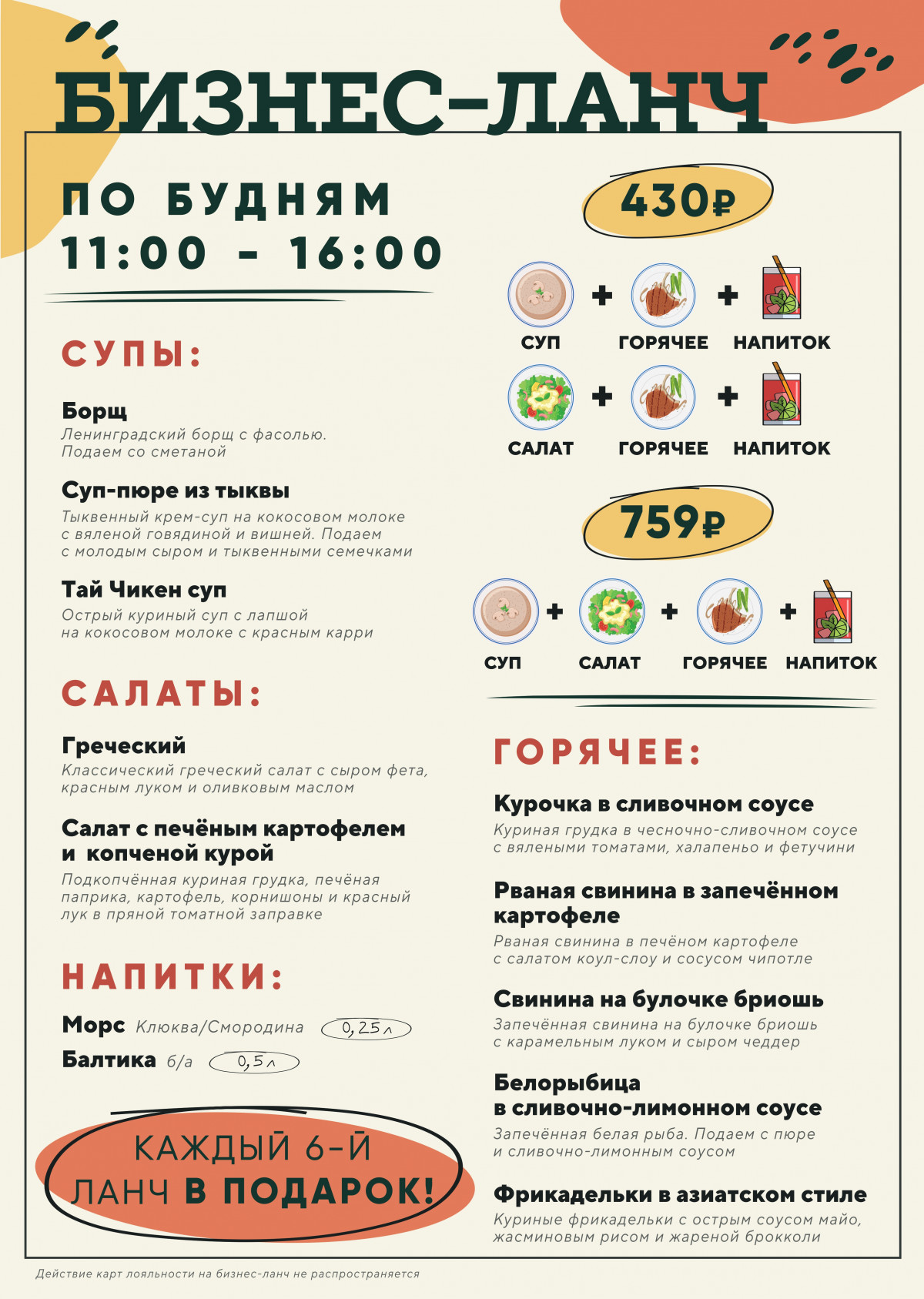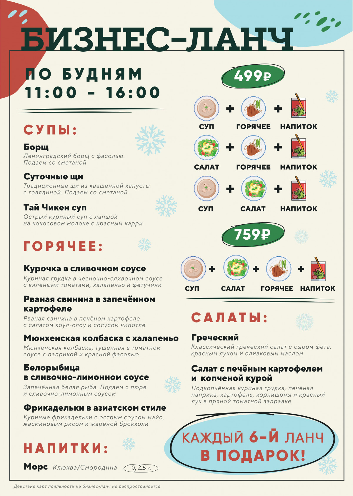 Каждый 6-ой ланч в подарок на Радищева, 32!